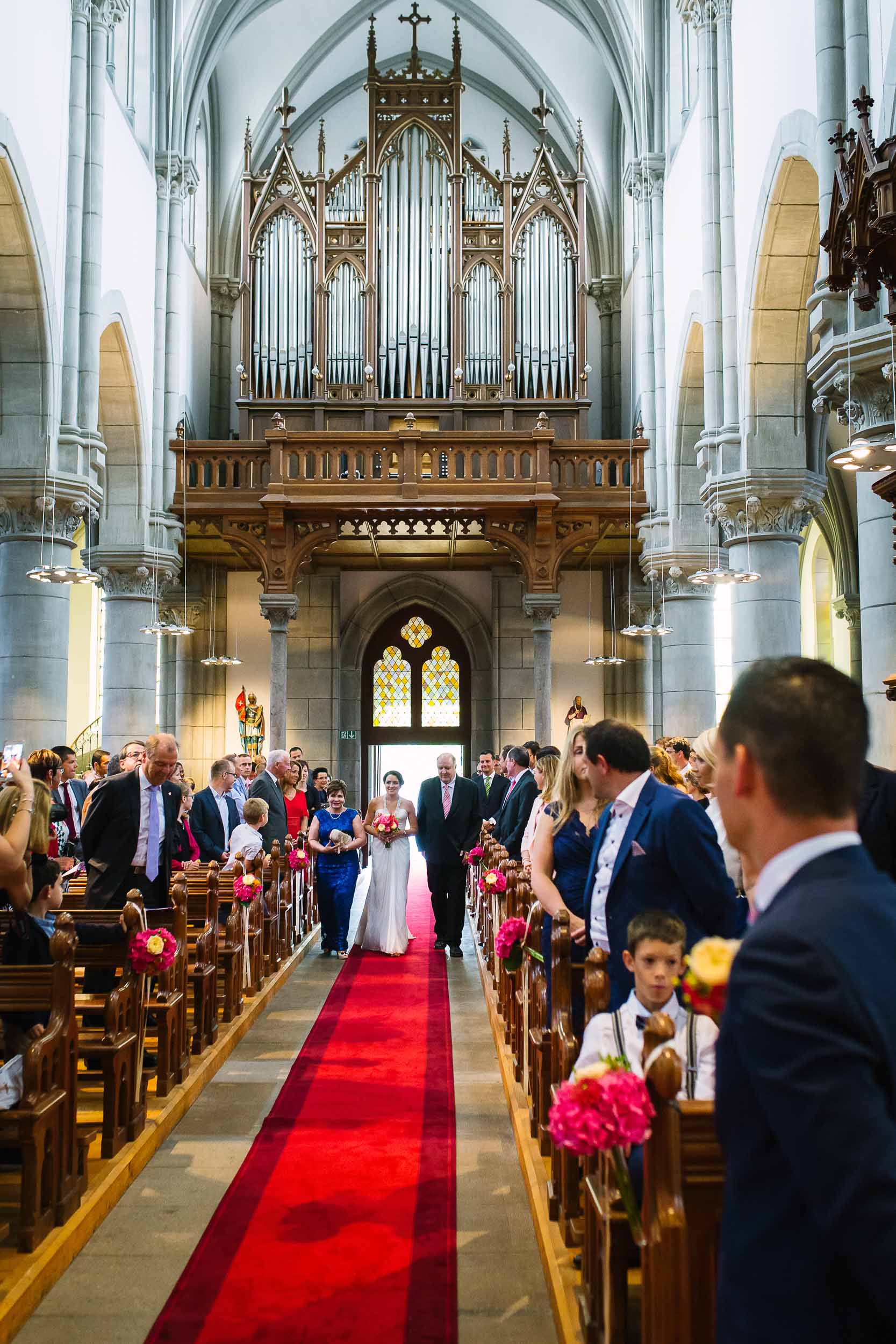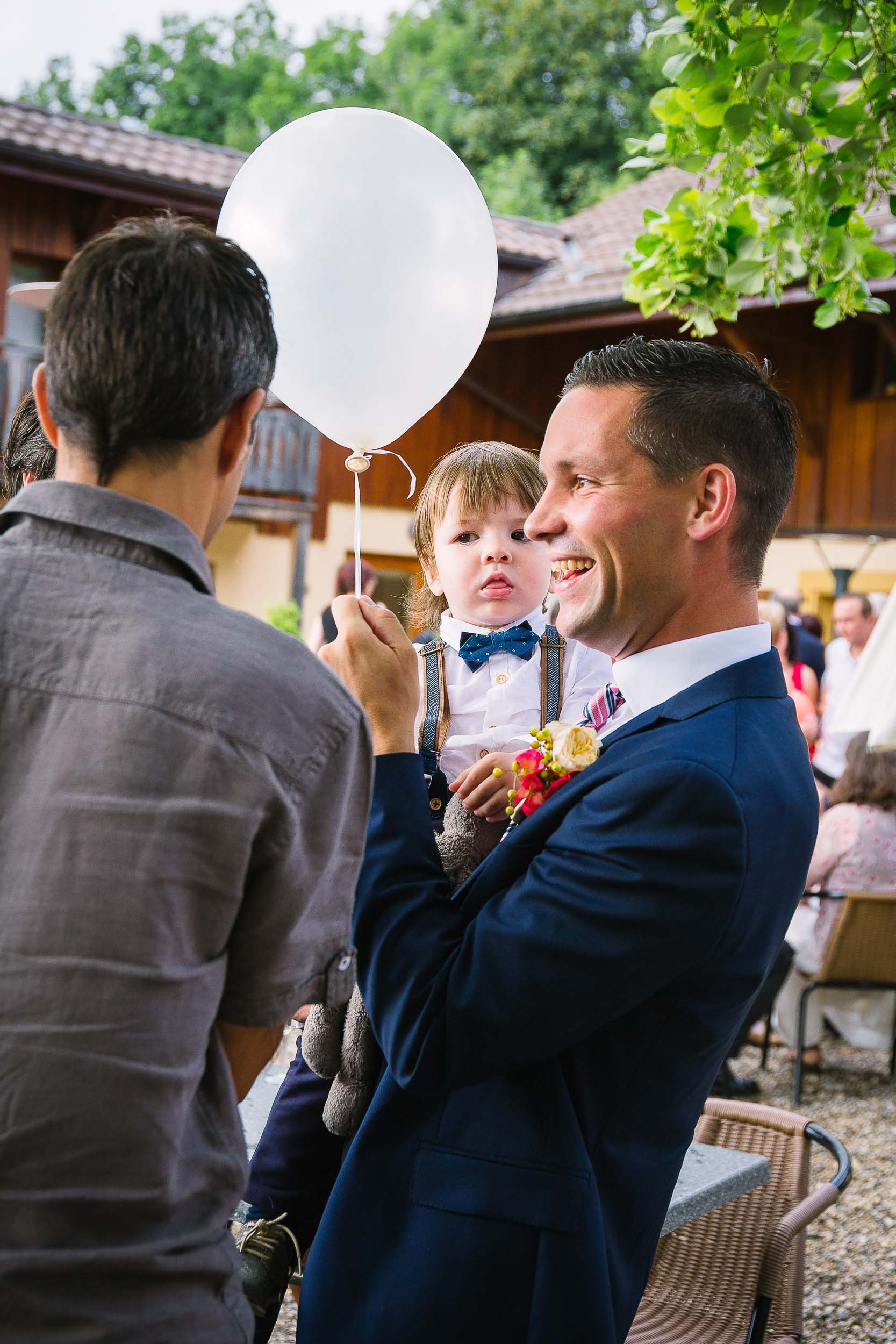 The ceremony took place at the Église Notre-Dame de Vevey, which is always a joy to photograph. Despite the grand surroundings, the celebrants are wonderfully relaxed, and I loved to see their son join his parents at the front on occasion to see what was going on. We wrapped up with a thunderstorm, confetti and bubbles before heading off to the drinks reception in Puidoux.